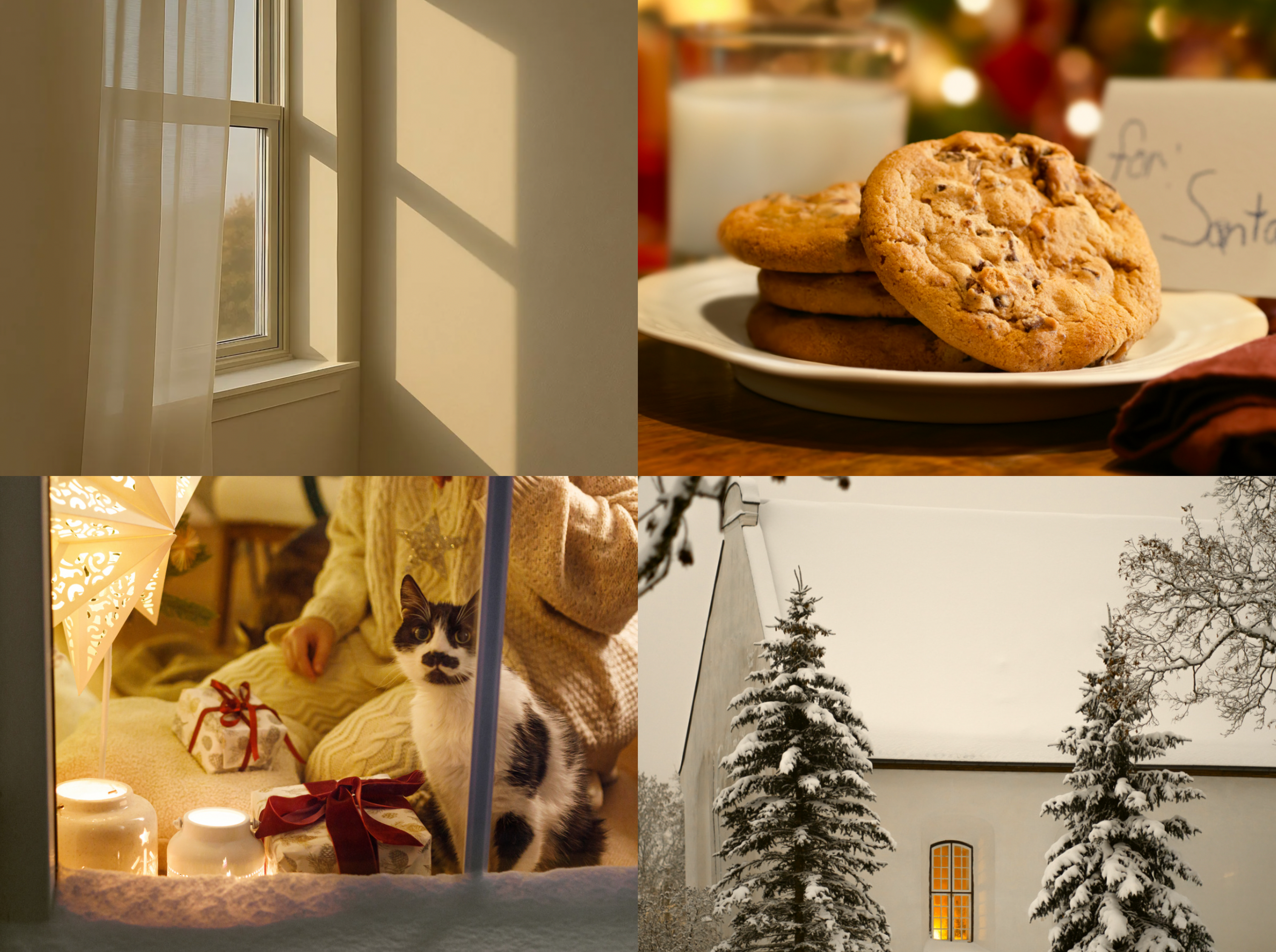 The quiet of snow, warm light aglow, through paned glass, a fire crackles gently, cookies and milk, gifts under the tree, a blanket pulled close, here, is where I want to be.