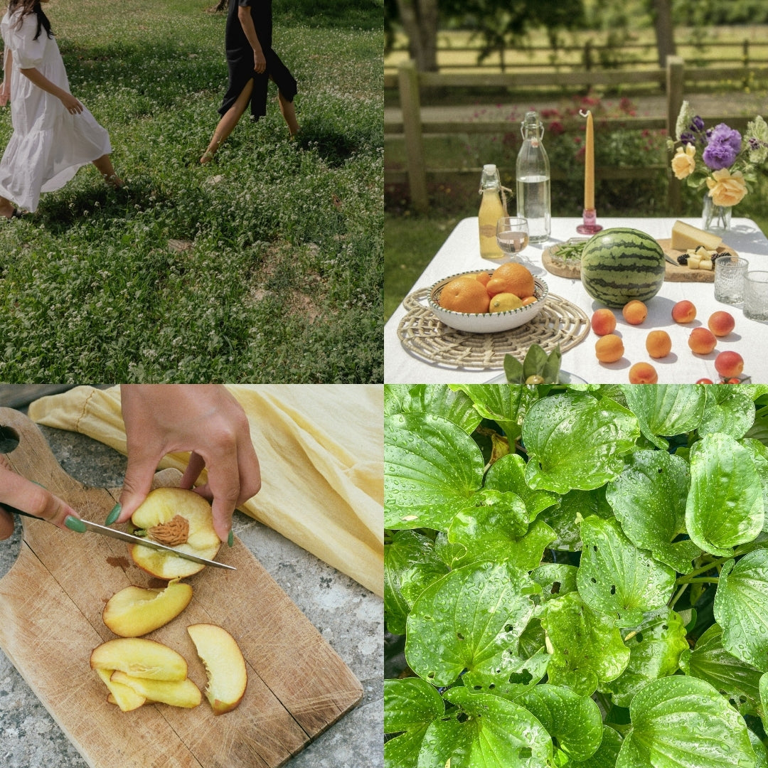 afternoon sunshowers, bare feet on wet earth, fresh herbs in the garden, juicy peaches and all the time in the world