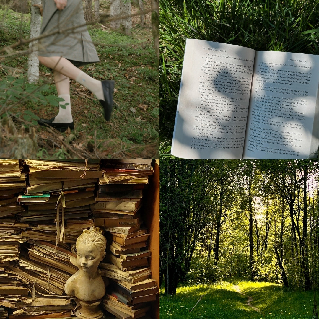 You've found an opening in the forest, a reprieve. Upon getting closer, you see books stacked high, left by fellow travelers from years past. Old leather chairs nestled in moss invite you to rest.Β This is the Library in a Forest, where time ceases to exist and the air is so crisp it pierces your lungs.